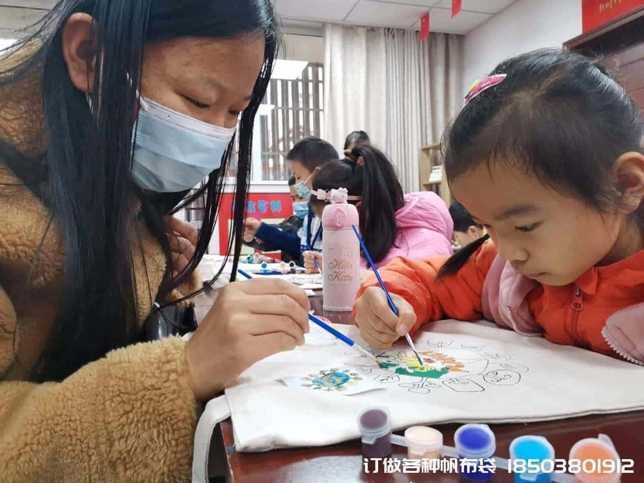 活動一開始,社區志愿者給小朋友們介紹了環境污染現狀,讓孩子們意識到環境保護的重要性。隨后志愿者將白色帆布袋發給孩子們開始手繪創作。活動現場,每一個孩子都化身“小小藝術家”,在家長的陪同下他們在環保袋上涂抹出絢麗色彩,描繪出童趣畫面。有的孩子畫的是“愛護地球”,有的孩子畫的是“垃圾分類”,一個個作品都飽含著環保意識。