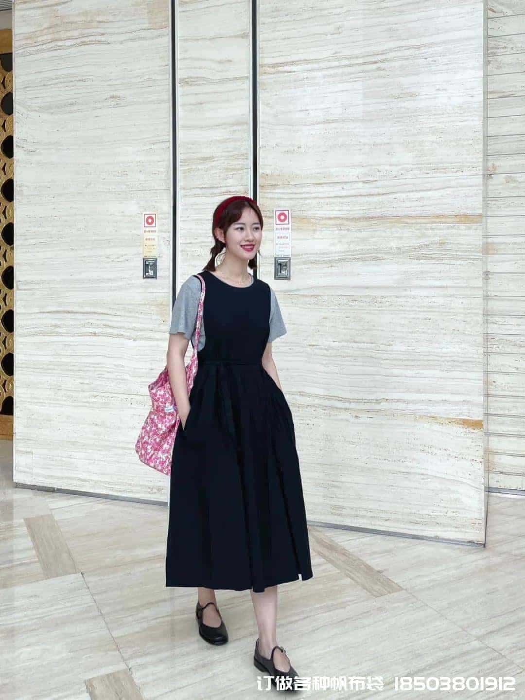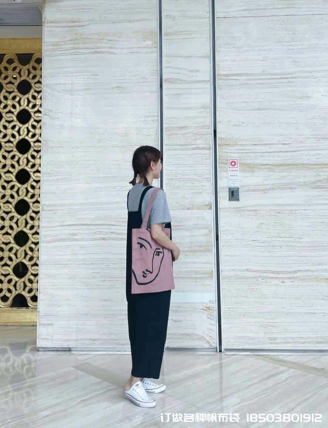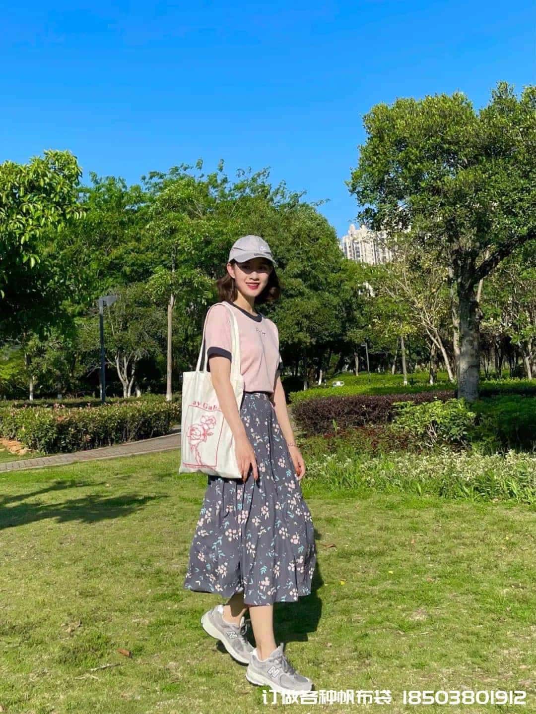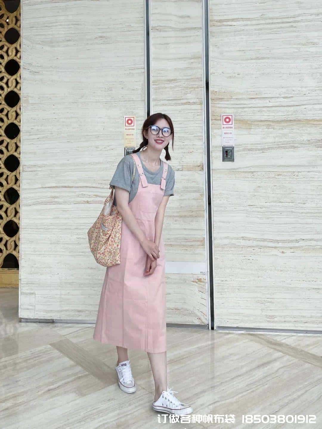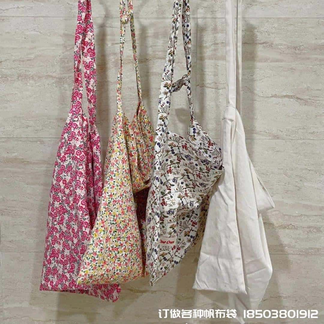 碎花包的搭配只需要碎花中的一種顏色跟衣服呼應就好,比如這只包搭配粉色也很和諧,真是帆布手提袋帆布袋制作電話/微信:15838231350怎么搭配都好看。