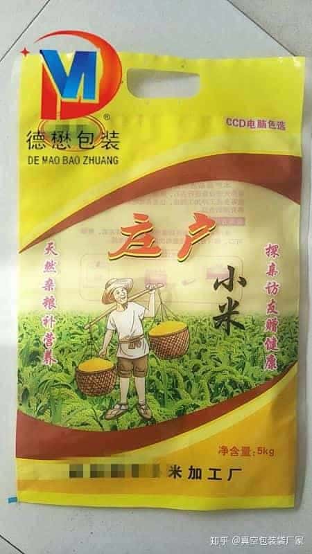 二、大米真空包裝袋的密封性與真空包裝袋的通透性。 大米在裝袋后,最后一道工序要對真空包裝袋進行熱壓封合,而這一道工序的質量高低會直接影響真空包裝袋的密封性能。如果最后封邊不嚴,會導致包裝袋漏氣,空氣將會從包裝袋漏氣部位滲透進入真空包裝袋。真空包裝袋的通透性過大這也是導致食品漲袋的另一原因。大米真空包裝袋 三、運輸過程及銷售商倉庫的儲存溫度,很多產品因為室溫間斷超過37攝氏度以上,一冷一熱,內部產生冷凝水等導致。
