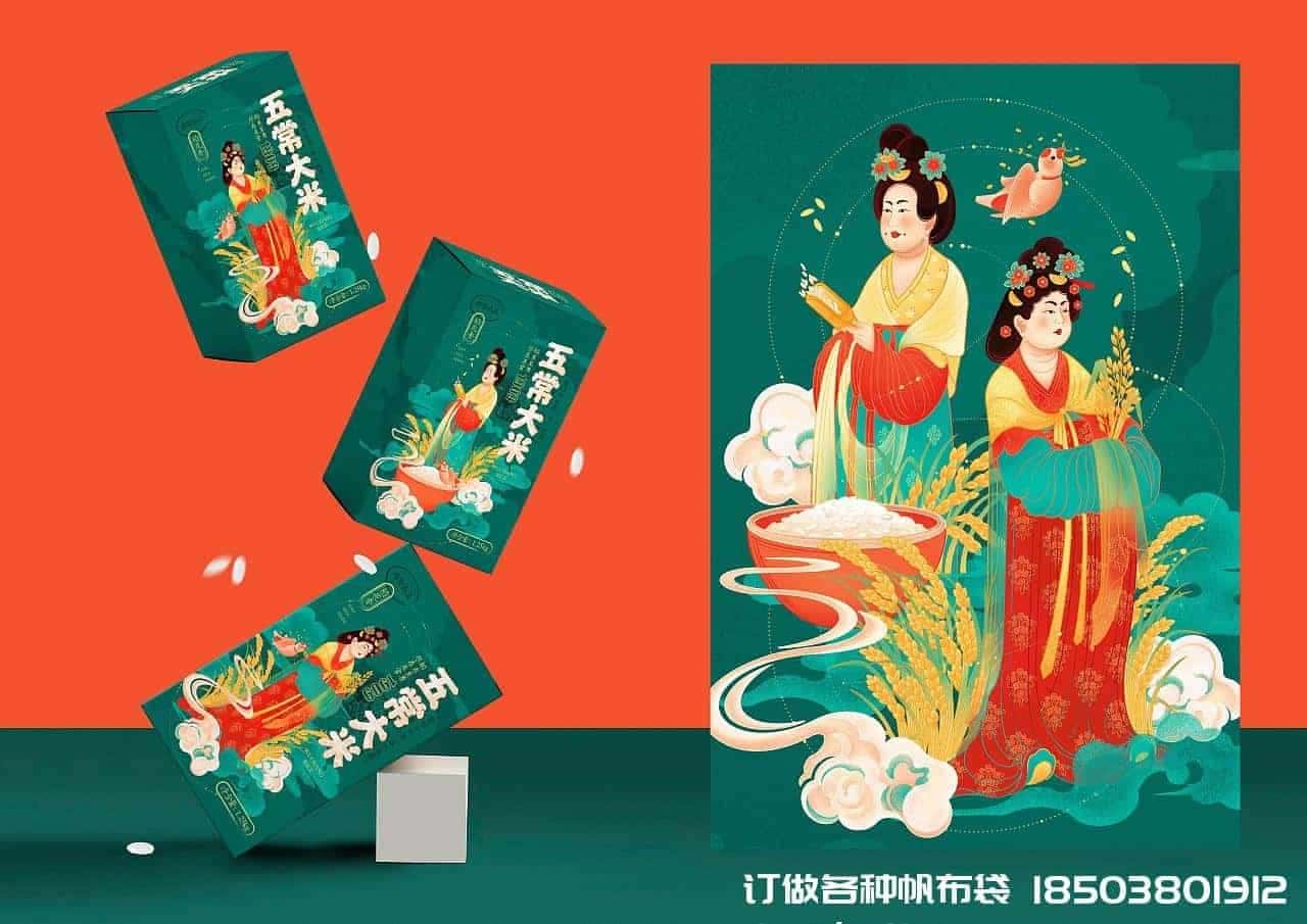 在產(chǎn)品同質(zhì)化的今天,文化包裝發(fā)揮這重要的作用。大米包裝也可以用中國傳統(tǒng)的繪畫、手工彩繪等手法,把民族特色的工藝形象結(jié)合起來。