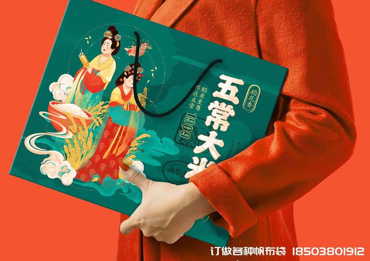 設(shè)計師將唐朝仕女圖融入五常大米禮盒包裝上,實現(xiàn)東方元素與當(dāng)代藝術(shù)的完美結(jié)合,東方審美不僅僅是淡然平靜,也可以絢麗多彩。