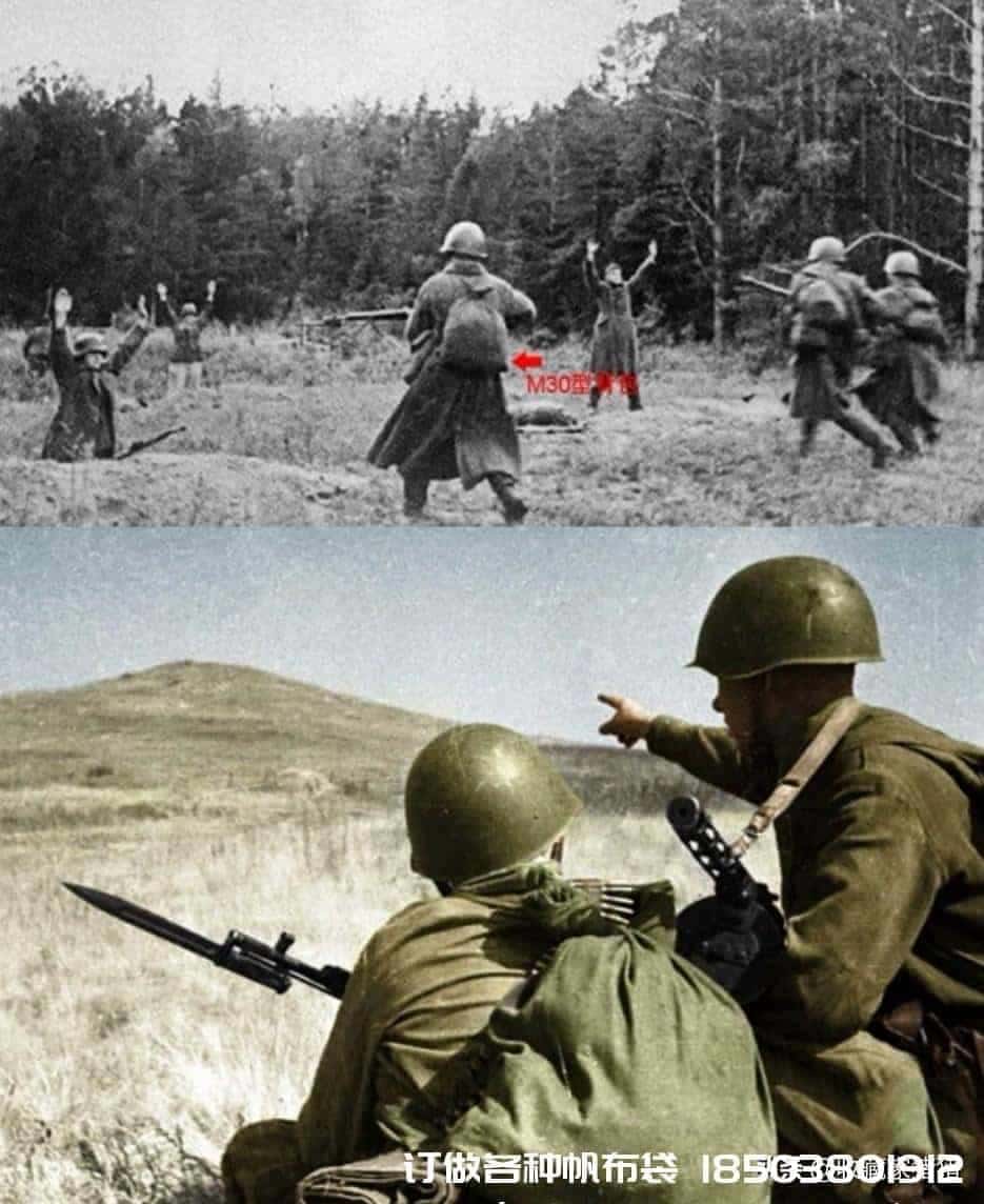 這里講的“大米袋”麻布袋帆布袋制作電話/微信:15838231350其實是蘇聯(lián)紅軍的單兵配發(fā)裝具,麻袋似的帆布背囊,它與蘇制波波沙沖鋒槍,T-34型坦克,歷來是衛(wèi)國戰(zhàn)爭期間蘇聯(lián)紅軍士兵的經(jīng)典形象。