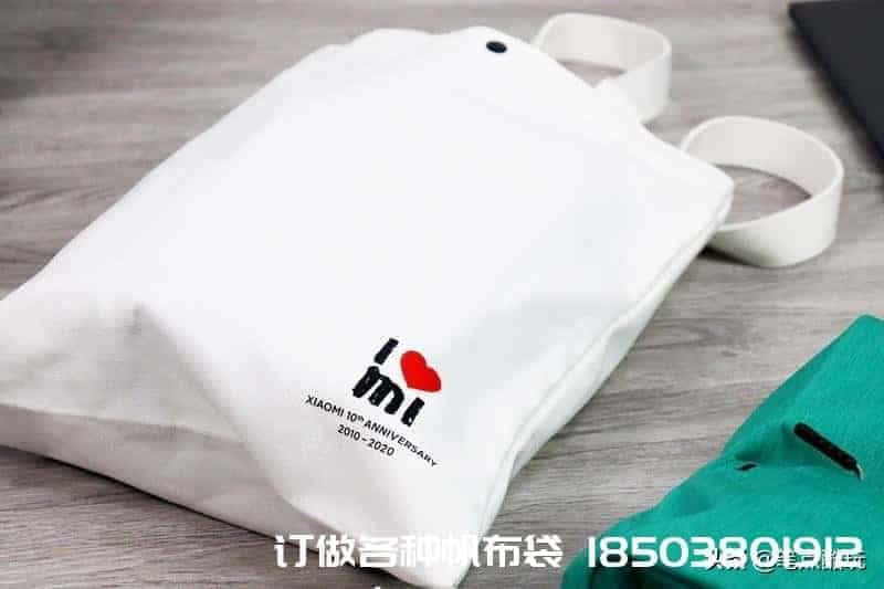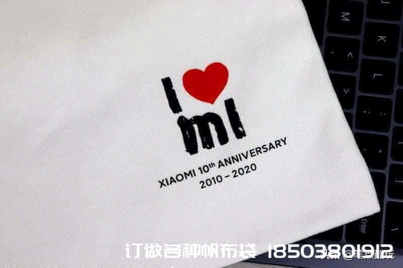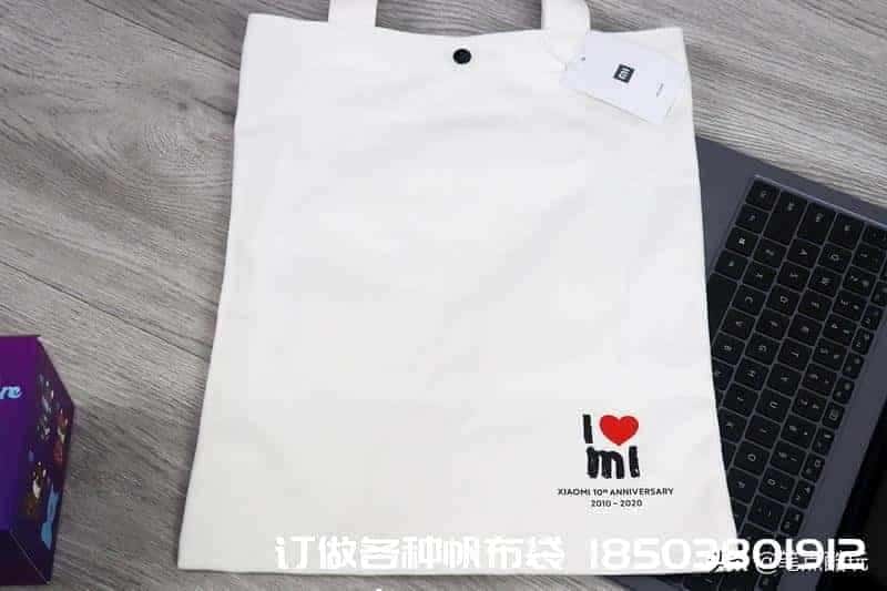 帆布袋廠家帆布袋制作電話/微信:15838231350前陣子是小米十周年的狂購時間,相信不少米粉都趁熱乎擼了不少小米家的好貨,我看咱們本地米粉群里一堆大佬在秀自己的十周年紀念體恤(黑色I love小米那款),那家伙,心里默默切了數十次檸檬!你們厲害,但我也不差,這次終于讓我撈到機會秀一個你們沒有的定制貨了。這篇小文,我就斗膽展示一下,本人被一道天雷劈中獲得的“秘制幸運”:小米十周年紀念版定制帆布包。你看看,是不是也有I love mi?是不是也有XIaomi 10th Anniversary字樣,你有錢也買不到,服不?