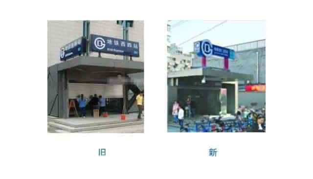同時因為背景色由白底更改為“科技灰”,或者直接使用原色玻璃,增加了背景與 logo 之間的對比度,讓店招在遠方看來更為醒目。這就像北京地鐵對外部招牌的微調一樣,也是體現了讓地鐵 logo 更醒目的設計原則。