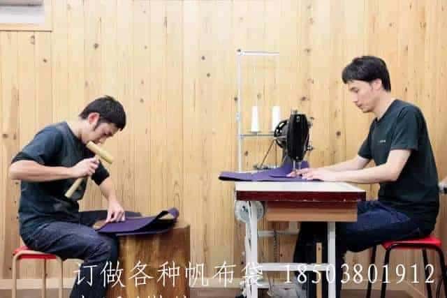 它的工廠在距離店鋪不遠(yuǎn)的街巷拐角處?,F(xiàn)存最老的匠人 94 歲。所有從店里賣出去的帆布袋,都可以終生維修……