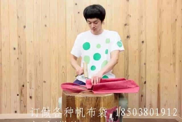 由于帆布厚且硬的特質(zhì),一澤家的帆布制品在裁剪之后和上縫紉機(jī)之前,會(huì)多出一個(gè)由木槌捶打成型的工序。