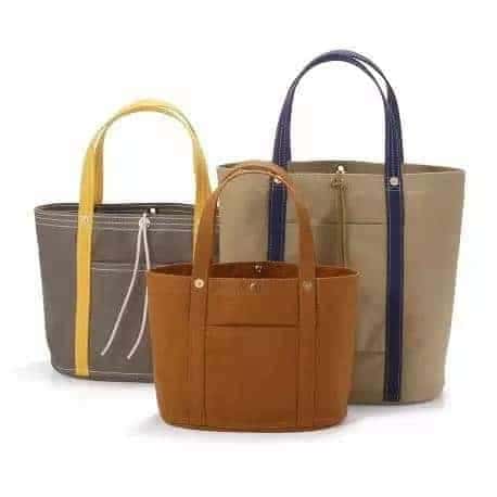 值得注意的是,一澤信三郎品牌標(biāo)簽有 3 個(gè)。白底綠色文字的標(biāo)簽,用于棉帆布袋子系列;藍(lán)底白色字的標(biāo)簽,用于大多數(shù)亞麻帆布袋子;沿用百年前標(biāo)簽的系列,則用于各種復(fù)刻版本的產(chǎn)品??吹綐?biāo)簽,就能大概分辨袋子的材質(zhì)和所屬系列,十分方便。