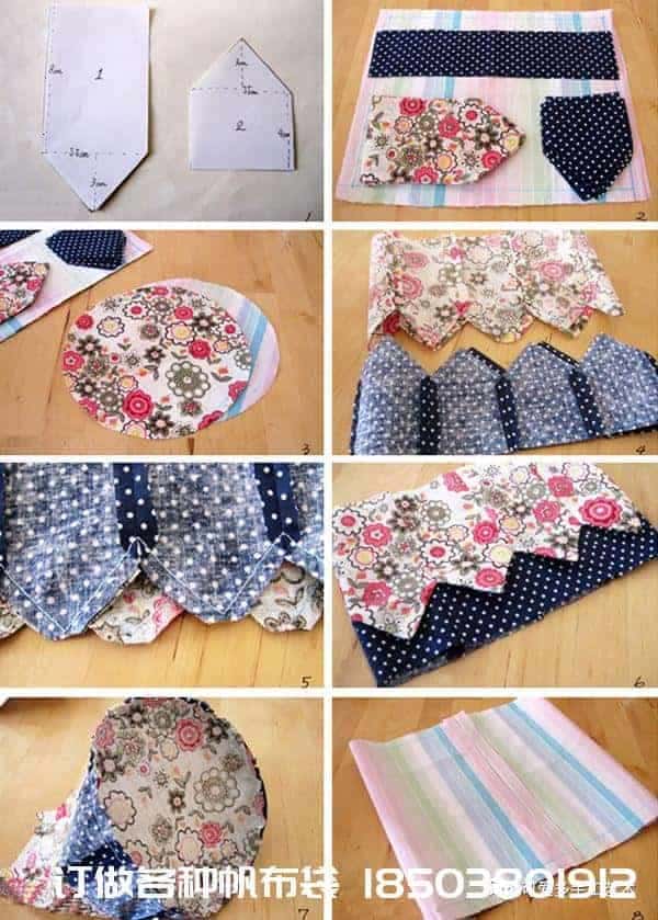帆布包裝帆布袋制作電話/微信:15838231350一提到束口袋,大家是不是只會想到,一個袋子做成方形的,穿上一根繩,一拉上,就算是一個束口袋了,它僅僅只是收納一些無關緊要的小東西?東西不多,它就無法出場了?那你就OUT了,除了多層的拉鏈包包,束口袋的的功能也可以很強大,除了顏值高,還能做成多層的,東西分類收納,一根繩子最后一拉,以后打開,真的是包羅成有! 來源 | 可愛多手工藝術 ID:ke-aiduo 各種創意束口袋DIY 做成花的,水果的,小魚的,多層的,樣樣行,以后有好看的碎布千萬別閑置了,都拿出來這樣利用吧! 圖解制作過程 我們來學習一個多層束口袋的做法,一打開,里面就可以分隔成多層,放上你需要收納的精致小物。 還能當成收納針線或手工材料的收納袋,做成立體的擺放著,當成籃子一樣用了。 剪三個不同大小的圓車縫,就能變成更多層了。 看做法 分別準備兩塊布,兩塊做成小圓,帆布包裝帆布袋制作電話/微信:15838231350另外兩塊做成大圓。至于做多大,視乎你想把束口袋做成多大而定。自己喜歡就好。就是兩個圓的大小不要相差太大。 兩個圓縫好之后,翻回正面,相疊。 按如下圖車縫,中間可以分隔,小圓的邊縫車縫上一條穿繩子的“軌道”,最后穿上繩子一拉,就完成了。 我們來看詳細教程 ▼ 家里有些閑置了的衣服褲子或牛仔褲也試著利用一下。 還有這種一塊布就變成多層收納的束口袋。 戳視頻查看做法 ▼ 更多束口袋做法 束口袋是不是比想像中的好用?準備幾塊布,做幾個吧! 相關推薦 訂閱號:服裝云教育