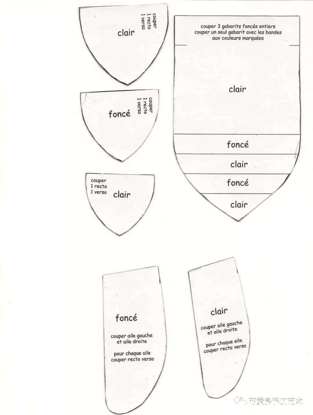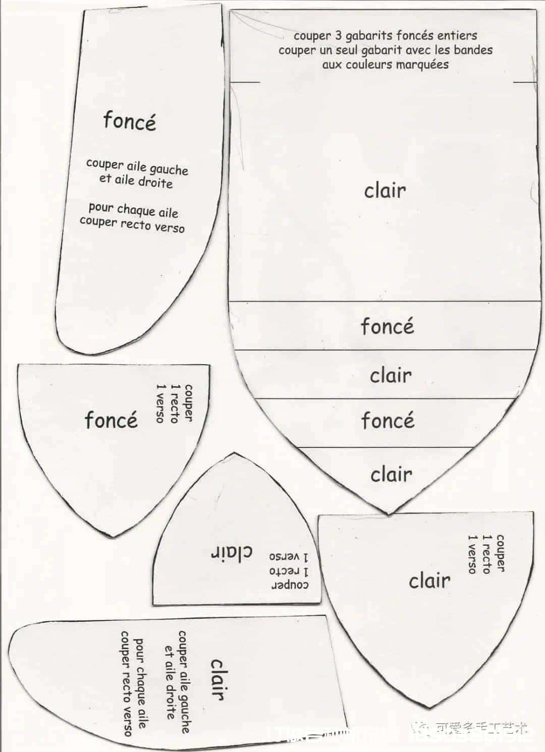 畫出以下圖紙或把圖紙打印下來 ,分別剪下來放在布上,剪出蟬的各個部分分別兩塊。