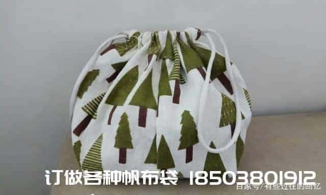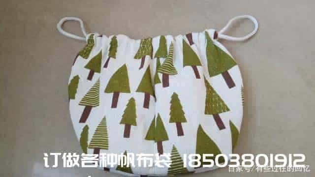 把里布和表布正面相對縫合在一起,再穿上線繩束口袋就做好了。