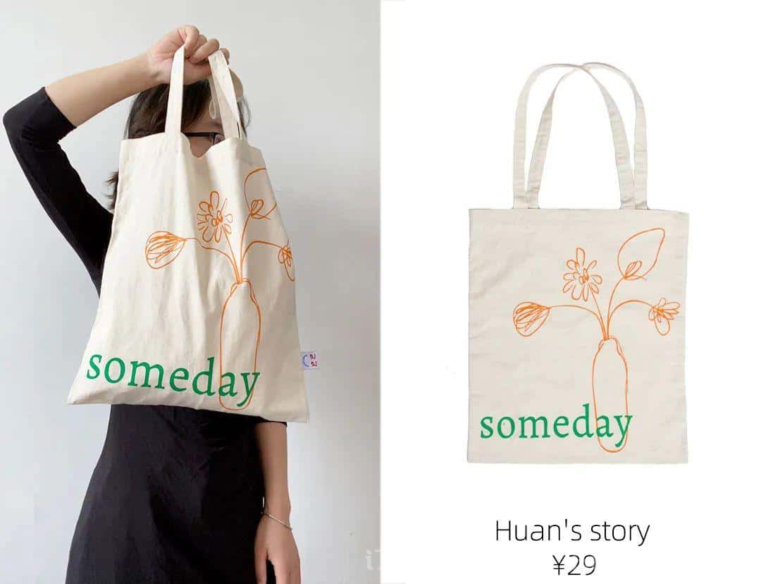 他家的手繪圖案+字母印花的帆布袋還挺好看,價格也便宜,大部分都在30-40元之間。