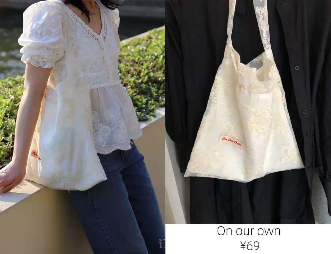 鏤空蕾絲布料的布袋子感覺裝些花花綠綠的水果特別上鏡,適合背著去野餐。