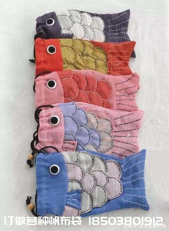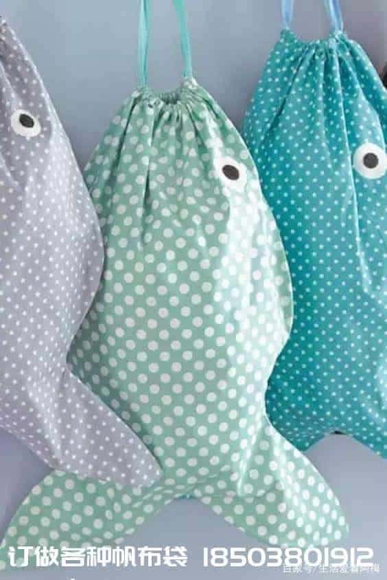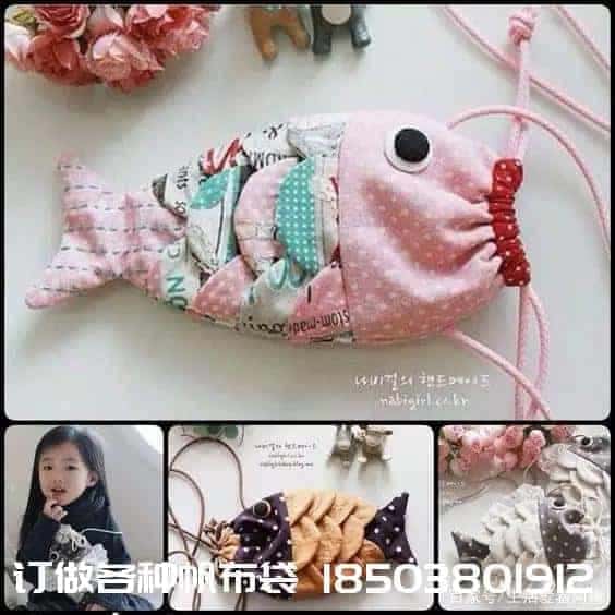 大米帆布袋帆布袋制作電話/微信:15838231350用舊衣服布頭做幾個小魚收納包包,有趣又實用,看完就想做幾個!