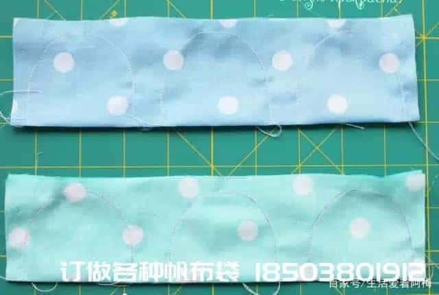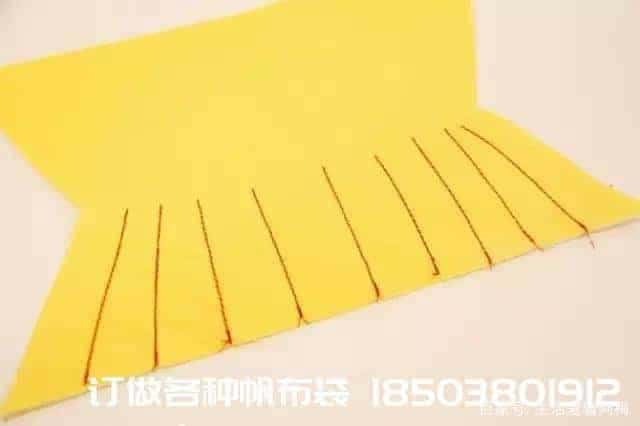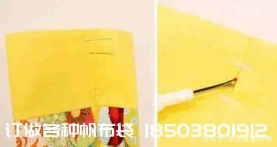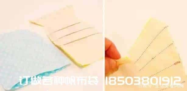 在頂部的位置上下縫一下,拆個小孔用來穿布條。