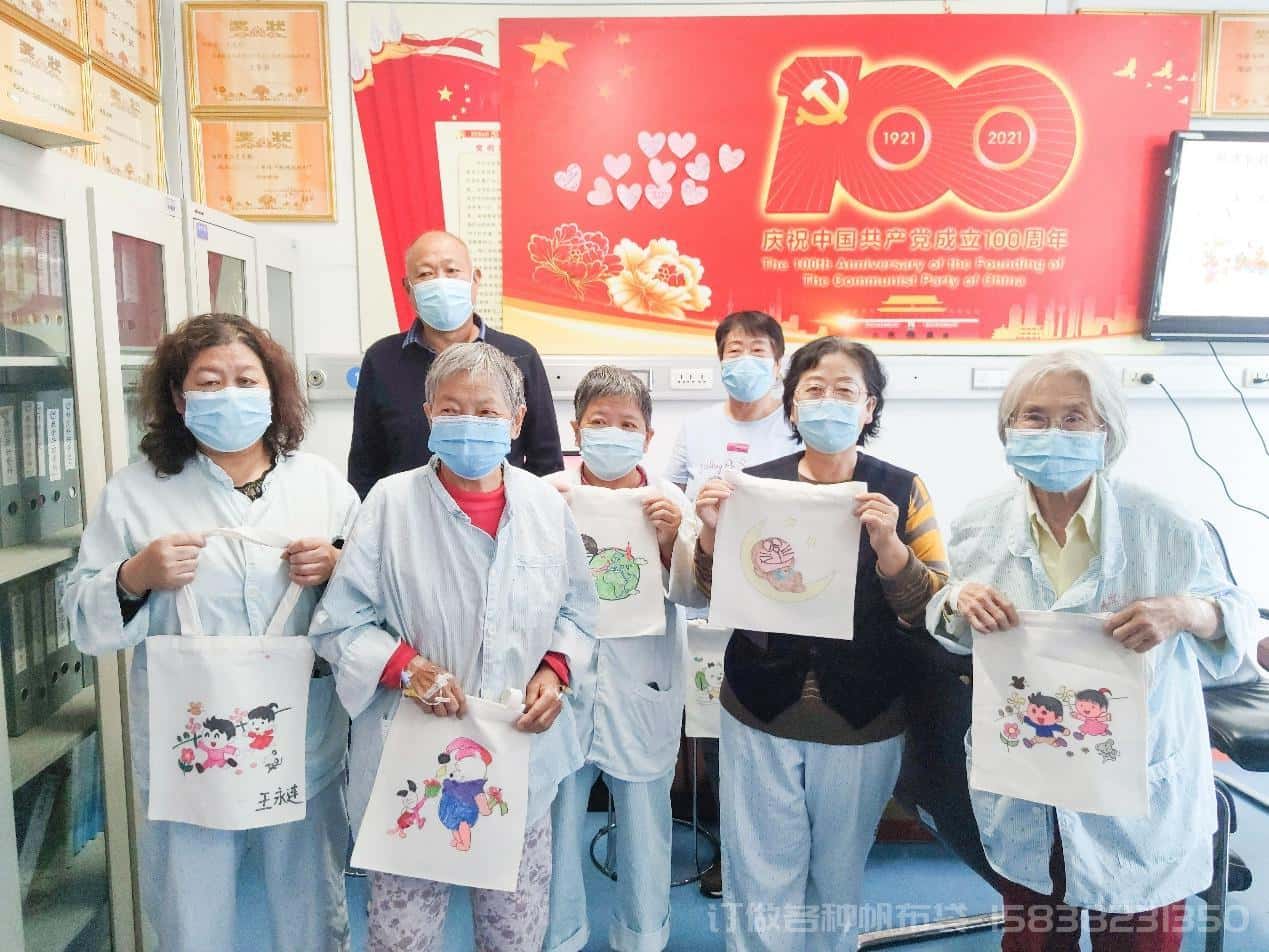 老年患者的彩色帆布袋作品展示