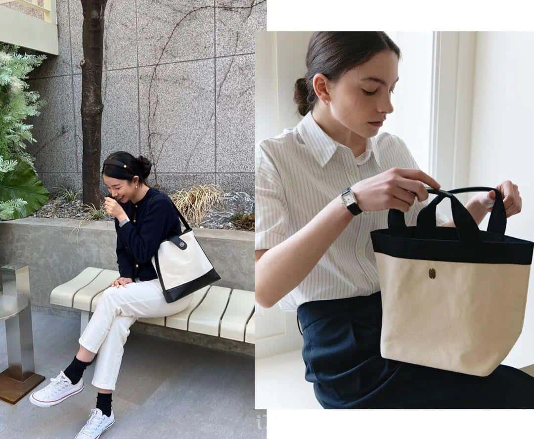 除了常見的大布袋造型,近兩年升級版的帆布拼皮或“便當造型”也很火。