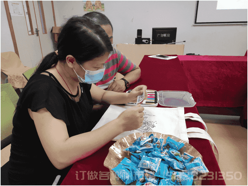 活動中,工作人員為大家發放事先準備好的帆布袋、畫筆、顏料以及彩繪圖片,孕媽們迫不及待地開始動起手來,在圖案上填充上斑斕的色彩。定制自己專屬的DIY帆布袋,濃彩重墨的色彩之下傳遞著孕媽對寶寶的愛。