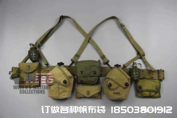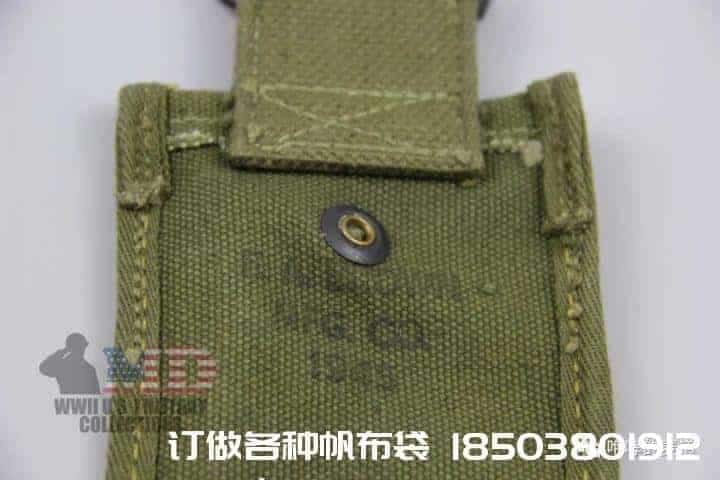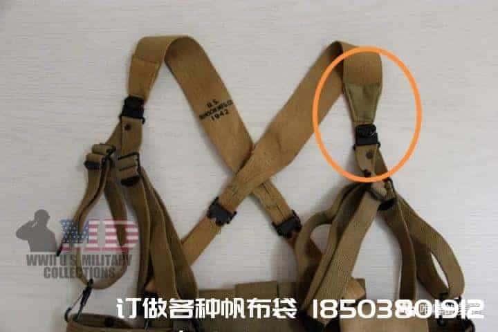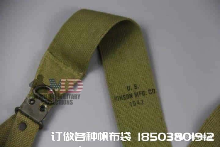 1941年生產(chǎn)的裝具使用了一部分一戰(zhàn)剩余物資,可以從帆布的厚度上看出來,總體來講一戰(zhàn)時(shí)期的帆布略厚于二戰(zhàn)時(shí)期,看起來更厚重,顏色比42帆布袋廠家訂做 無紡布袋訂做廠家電話/微信:15838231350年生產(chǎn)的要深一些,更偏黃。