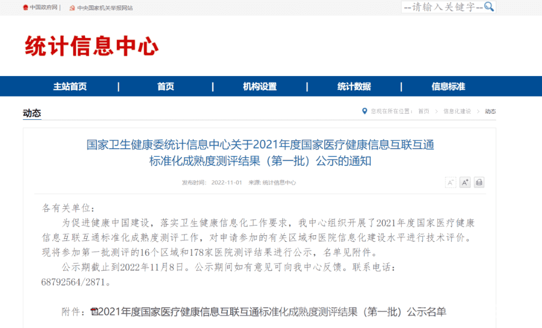 11月1日,國家衛生健康委統計信息中心公示第一批2021年度國家醫療健康信息互聯互通標準化成熟度測評結果,本批次測評共計16個區域和178家醫院參加。178家醫院當中,150家醫院測評結果為四級甲等,22家醫院測評結果為四級乙等,6家醫院測評結果為三級。