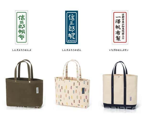 白底綠字的“信三郎帆布”代表著純色沒有花樣的包款;深藍色底白字的“信三郎布包”代表有花樣或采用棉麻混紡的包款;而“一澤帆布製”則是延續著家族的傳統,制作著最經典的包款。