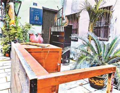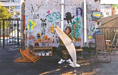 三三喜歡自己店里那些已經包了漿的老家具,因為沒有尖銳的棱角不會碰傷客人。波妞用舊物搭出了一個小花園,閑暇時她會和朋友在撿來的木墊和椅子上小憩。
