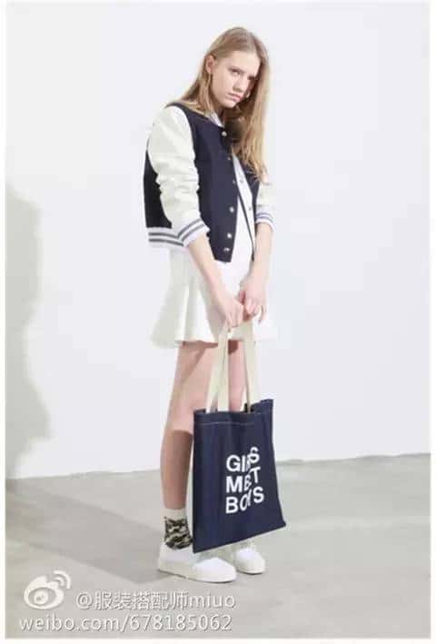休閑的穿搭,配上簡潔的白色字母帆布袋。