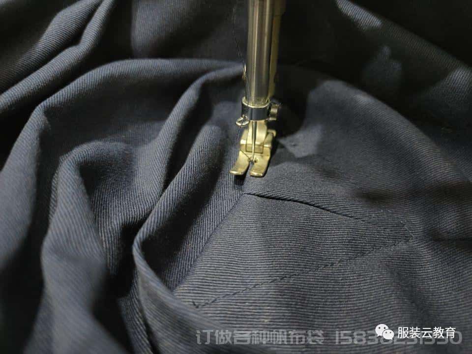 9、在袋口用記號筆將上帶袢的位置標記出來;