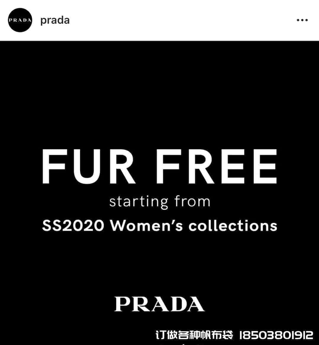 上個月,Prada宣布從2020帆布袋廠家訂做 無紡布袋訂做廠家電話/微信:15838231350年春夏女裝系列起就不再使用動物皮草,國際零皮草聯(lián)盟又添一員大將。