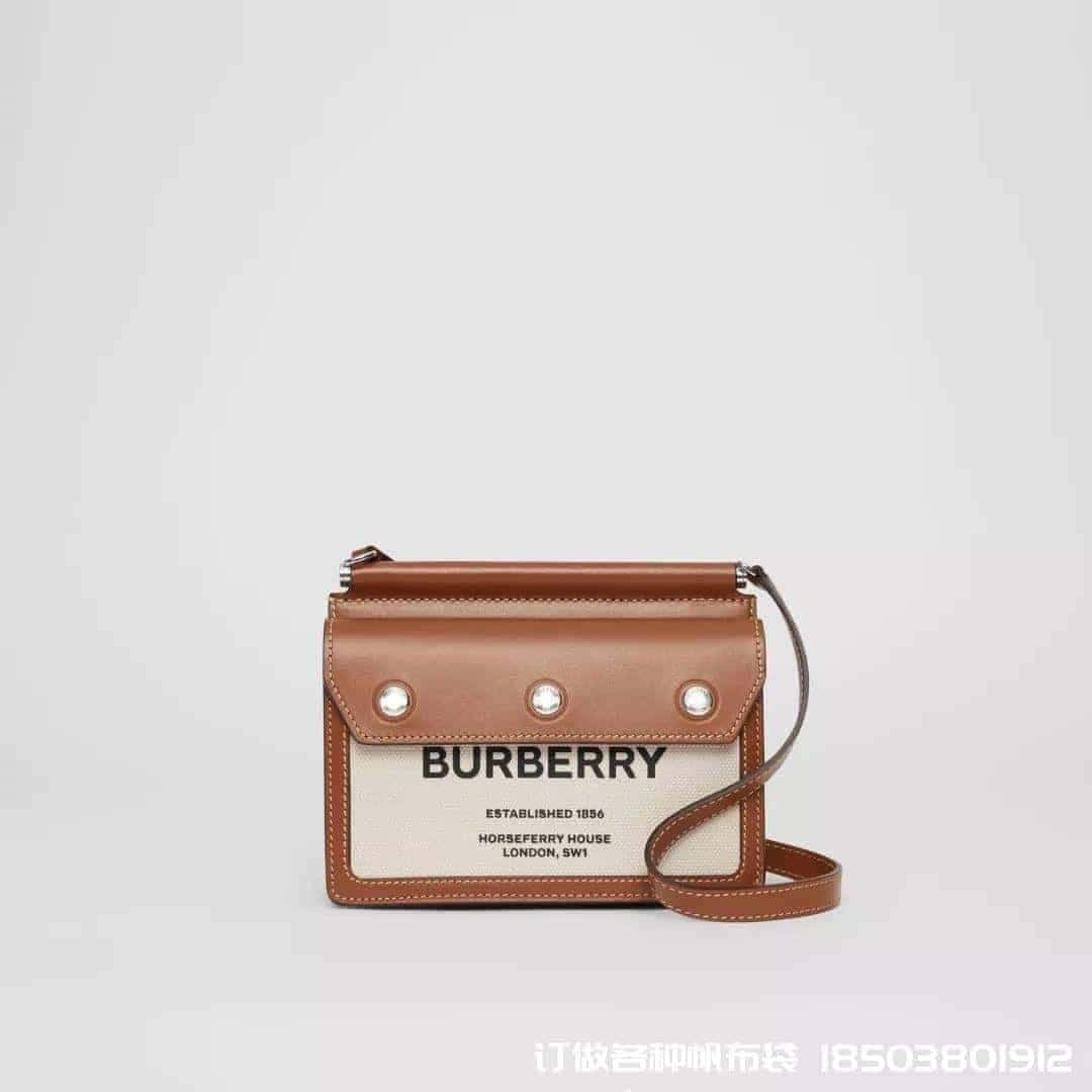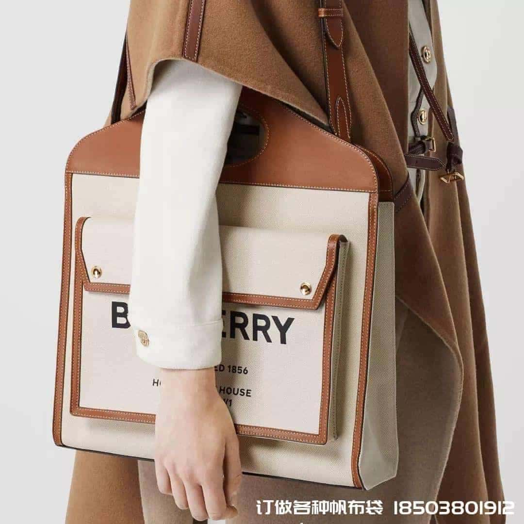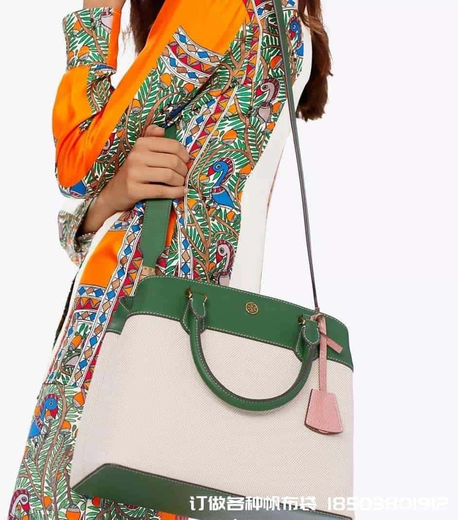 這帆布袋廠家訂做 無紡布袋訂做廠家電話/微信:15838231350次直接就用上了更加環(huán)保的原色帆布,皮革與帆布相互拼接,金色的立體TB 專屬金屬扣,百看不厭的經(jīng)典廓形,有種復古的英倫風感覺。