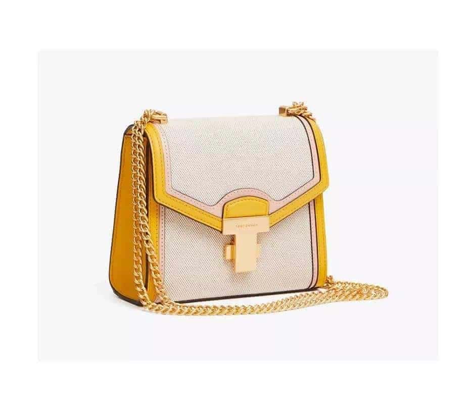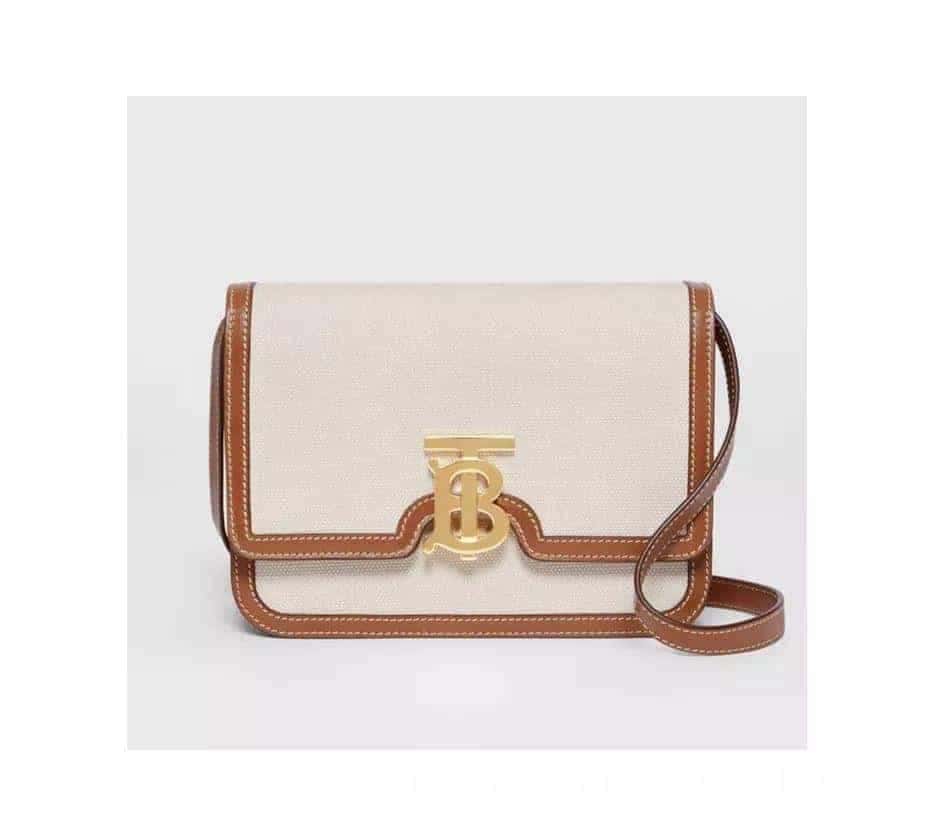 TB 小號專屬標識雙色帆布拼皮革鎖扣包