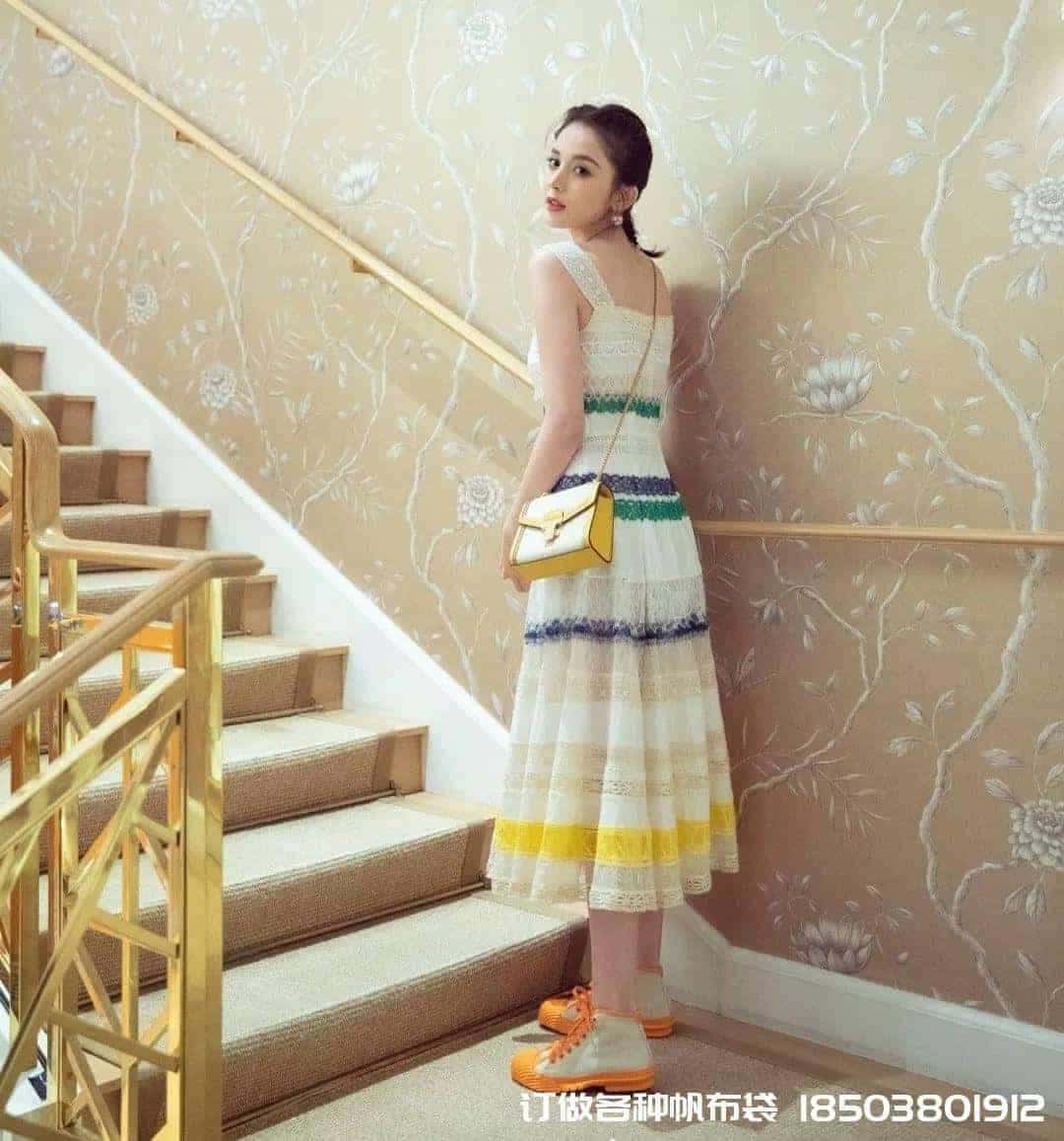 帆布袋廠家訂做 無紡布袋訂做廠家電話/微信:15838231350要想把這款包包發(fā)揮出十成的功力,顏色呼應是關鍵。仙女娜扎用它來搭配彩虹色蕾絲連衣裙再適合不過了,裙擺的那一抹躍動的嫩黃色與包體的檸檬黃完美呼應,是活潑、可愛的美少女無疑了!