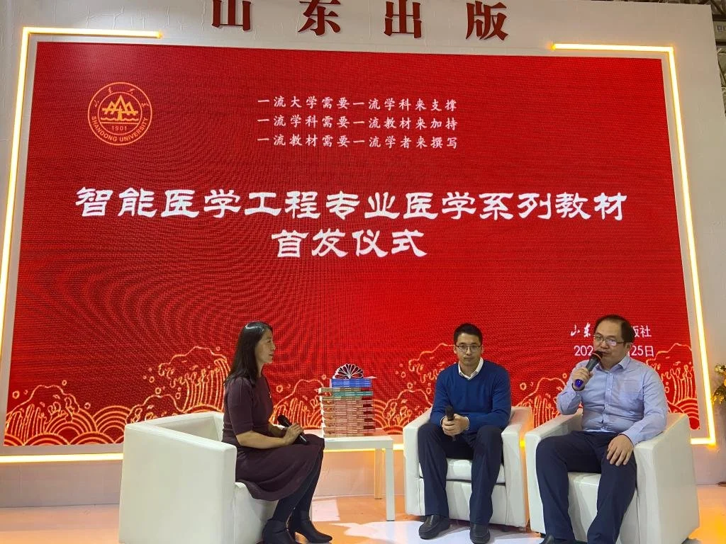 2月25日下午,齊魯醫(yī)院主編的“智能醫(yī)學(xué)工程專業(yè)醫(yī)學(xué)系列教材”新書發(fā)布會(huì)在北京召開。山東大學(xué)出版社總編輯王貽社為發(fā)布會(huì)致辭。山東大學(xué)齊魯醫(yī)院(第一臨床學(xué)院)院長(zhǎng)、教材總主編陳玉國教授,教育處處長(zhǎng)、《臨床研究規(guī)范》分冊(cè)主編呂明教授視頻出席會(huì)議并作專題講話。《人工智能與腫瘤》分冊(cè)第二主編、齊魯醫(yī)院腫瘤放療科副主任王建波教授,《人工智能與急危重癥搶救》分冊(cè)編委、齊魯醫(yī)院急診科副主任邊圓副教授出席現(xiàn)場(chǎng)訪談與提問環(huán)節(jié)。發(fā)布會(huì)由山東大學(xué)出版社醫(yī)學(xué)分社社長(zhǎng)徐翔主持。
