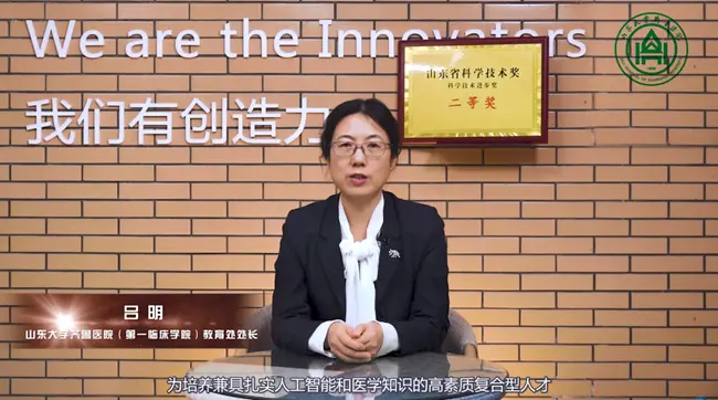 呂明介紹了智能醫(yī)學(xué)工程專業(yè)學(xué)科定位和人才培養(yǎng)的齊魯方案。呂明指出,智能醫(yī)學(xué)工程其強(qiáng)烈的專業(yè)特色即為醫(yī)工充分融合,基于人工智能方法解決臨床醫(yī)學(xué)問題。自2021年起,齊魯醫(yī)院主體承擔(dān)山東大學(xué)智能醫(yī)學(xué)工程專業(yè)的醫(yī)學(xué)模塊教學(xué)任務(wù),與教材編寫同步開展其醫(yī)學(xué)模塊的整合式課程建設(shè)。在頂層設(shè)計(jì)中,以崗位勝任力為導(dǎo)向,依托我院優(yōu)勢(shì)學(xué)科,著力提升課程高階性與創(chuàng)新性,增加挑戰(zhàn)度,實(shí)現(xiàn)知識(shí)能力素質(zhì)有機(jī)融合。建設(shè)過程中,聯(lián)合構(gòu)建了跨學(xué)科、跨學(xué)院、強(qiáng)交叉的教學(xué)團(tuán)隊(duì),實(shí)現(xiàn)醫(yī)教研協(xié)同,并將課程思政貫穿教學(xué)全過程。目前齊魯醫(yī)院已新建包括《急危重癥搶救》《臨床研究規(guī)范》等9門課程,并于2022年秋季學(xué)期首次開展了智醫(yī)專業(yè)的臨床實(shí)踐教學(xué),整個(gè)培養(yǎng)過程始終秉持“醫(yī)學(xué)牽引、工科支撐、轉(zhuǎn)化創(chuàng)新、臨床示范”理念,采取高起點(diǎn)、深融合、強(qiáng)特色、國際化人才培育模式。