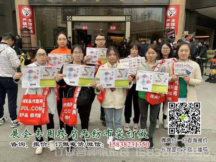 (1)善于利用免費資源來給自己造勢。每次糖酒會都會發現有些企業會印發很多質量上層的宣傳袋,經銷商由于剛性需求質量好的袋子來裝資料,成了廠家免費的宣傳員,這也是近年廠家都在采用的方法,其中成本較低效果較好的是免費發放跨肩無紡布袋,這種袋子容量大,可以裝很多的樣品資料,另外跨在肩上,上面印刷的廣告也能夠起到很好的宣傳效果,是流動的廣告載體。