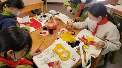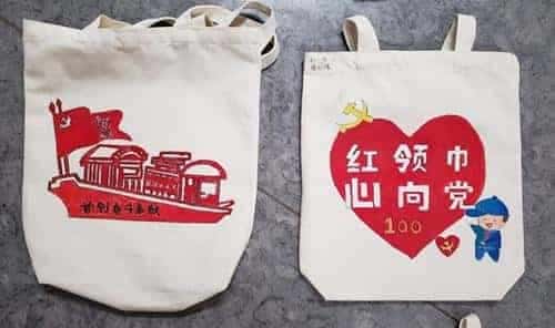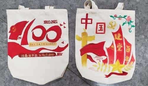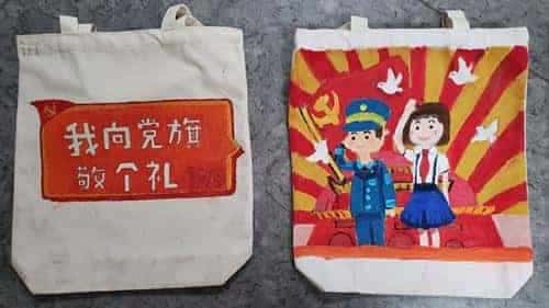 本次活動(dòng)要求學(xué)生結(jié)合課堂上學(xué)習(xí)的黨史精神,利用畫筆描繪出對(duì)黨史的理解,表達(dá)對(duì)黨的深厚情感。首先,各班美術(shù)老師向?qū)W生們介紹了帆布袋的繪畫方式,并對(duì)每一個(gè)步驟和注意事項(xiàng)進(jìn)行講解。隨后,學(xué)生們躍躍欲試,用事先準(zhǔn)備好的顏料和畫筆,進(jìn)行認(rèn)真創(chuàng)作。紅船精神、我向黨旗敬個(gè)禮、紅領(lǐng)巾心向黨等精美的圖文,點(diǎn)綴著白色的帆布袋,體現(xiàn)著學(xué)生們對(duì)建黨百年的真摯情感。