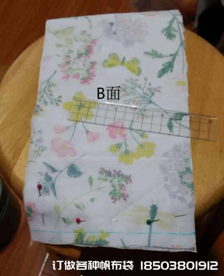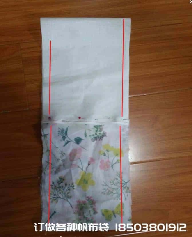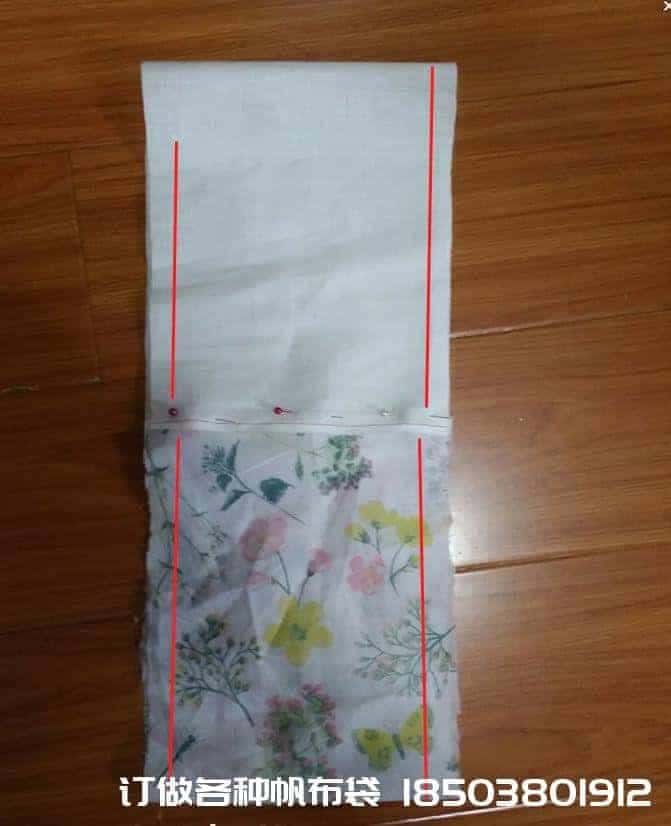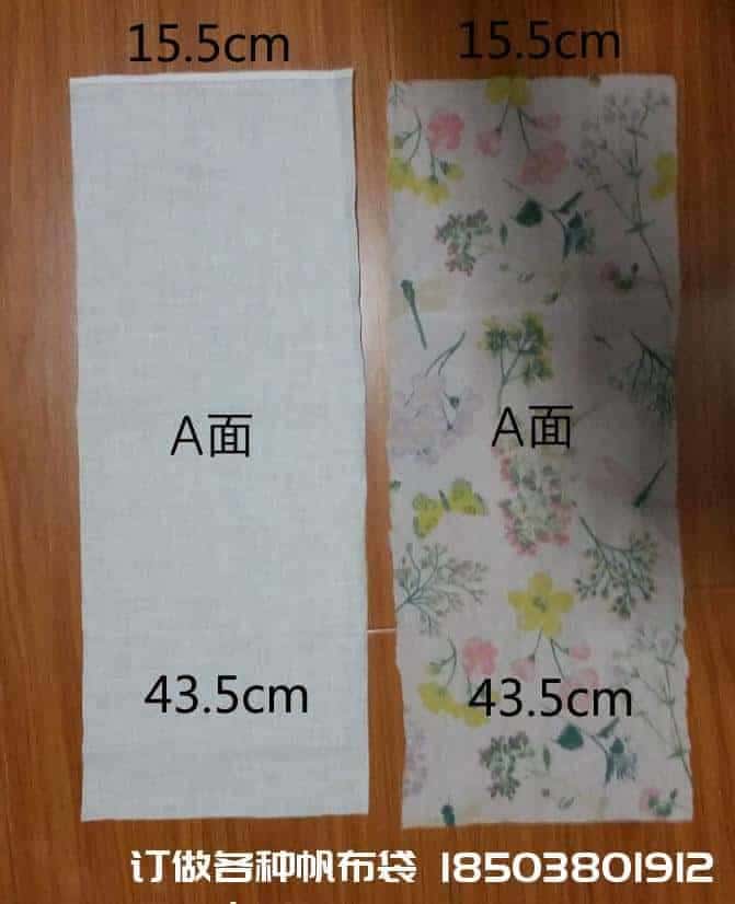 ①準備里布和表布,如圖所示(參考尺寸寬15.5cm 長43.5cm)