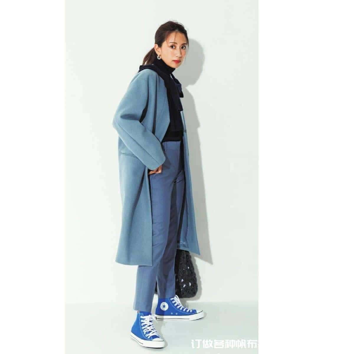 褲裝和帆布鞋能帆布手提袋夠組成一組固定的CP,那么要考慮的就是外套的選用了。大衣和帆布鞋組合在一起,是一種彰顯出年輕狀態的方式,而且這樣的著裝不會顯得呆板厚重,反而有效地削弱了造型的厚度和造型的重量感。