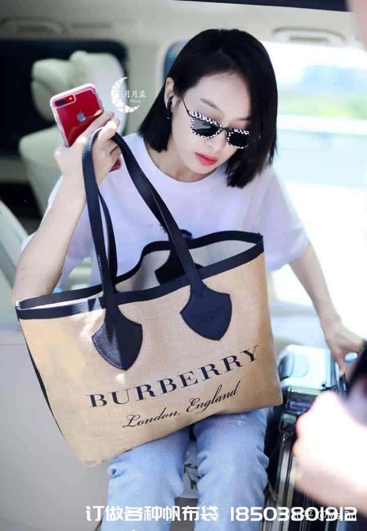 雖然映著晃眼的“Burberry”,但是帆布總有一股親切之感,宋茜的白T牛仔褲的極簡搭配,隨手提上帆布包,親和力+10086,但時髦感卻絲毫不減。