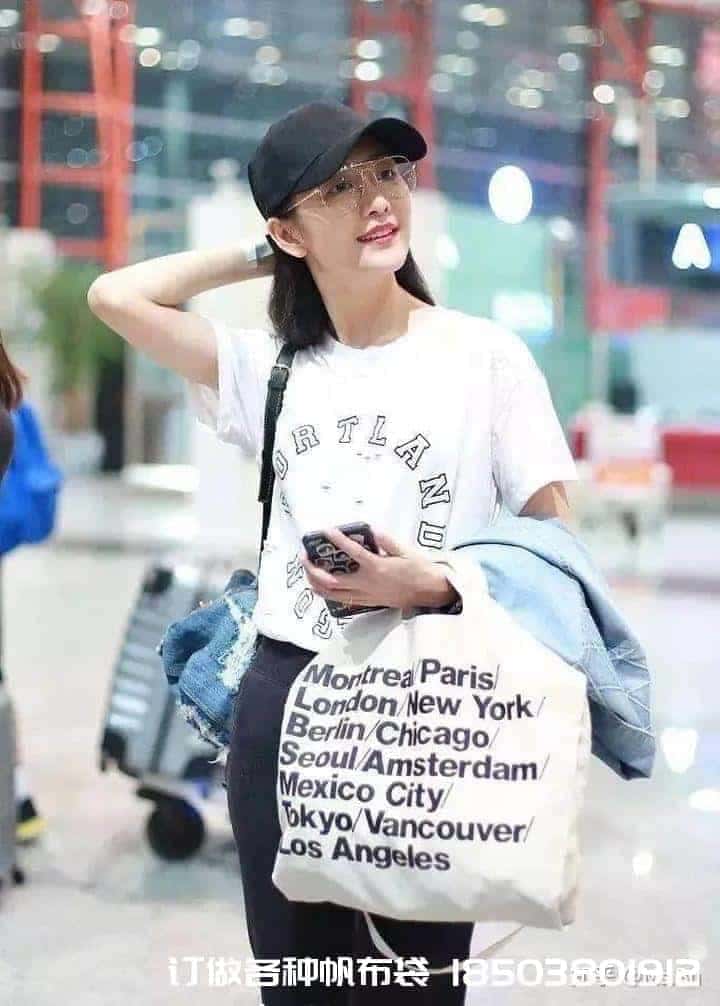 王鷗背了小包還要提個帆布手袋,這下你相信帆布包的容量了吧?白底黑字的帆布包,裝的滿滿的卻一點沒有厚重的感覺,這清爽的樣子太適合夏天了