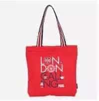 同樣是字母印花,但是環繞了英國標志性的建筑、下午茶、士兵的小圖案,一下子就設計感UP~最大的亮點格子醬覺得是肩帶,藍紅白三色條紋織帶,妥妥的英倫風~