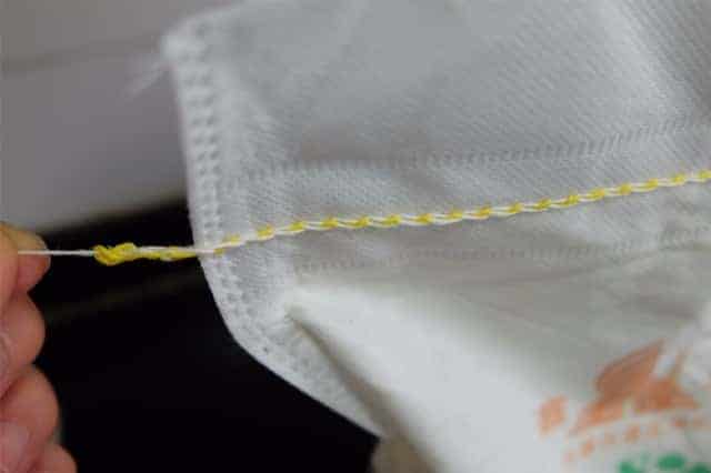 看吧,兩根完整的封口線就在手里了,拆面粉袋是不是很簡(jiǎn)單呢。記住這個(gè)小口訣:面粉袋,朝自己,是雙線,左邊拆,是單線,右邊拆,一手一根線,輕輕松松把袋拆。是不是很好記呢!不僅是面粉袋,所有的封口線都是這樣的哦。