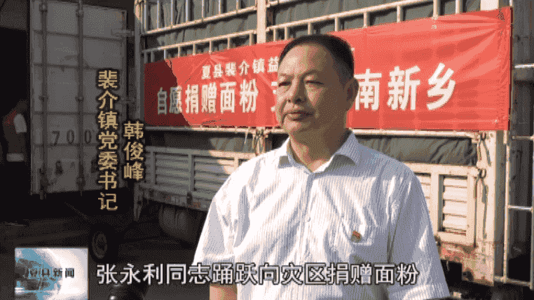 張永利同志踴躍向災區捐贈面粉,他的善行義舉值得我們每一位共產黨員學習。為此,我們要在裴介鎮積極的發動社會各界群眾、各個黨員,包括干部都要踴躍的為災區捐款捐物,獻出愛心,伸出援助之手。