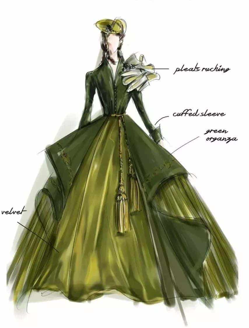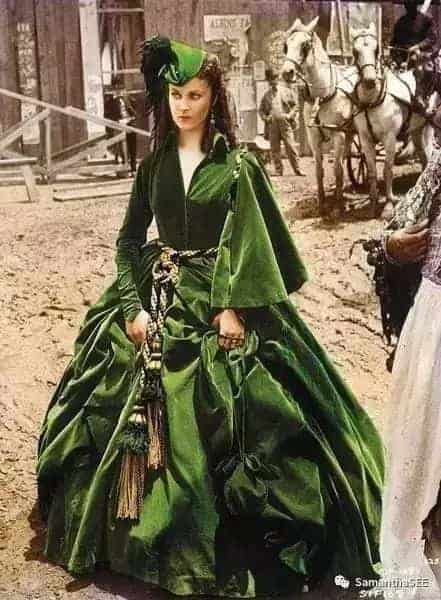 綠色與金色,交織成了柔美而堅強,自私而純粹的斯嘉麗,這身窗簾裝如同她的戰袍。