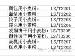 GBGB/T 8608為低筋面粉;GB/T 1355為中筋面粉;GB/T 8607為高筋面粉;LS/T 3201-3208專用小麥粉。