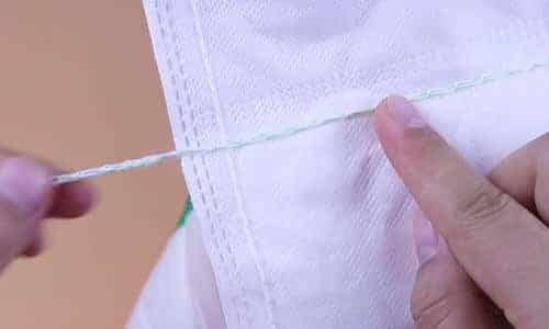 如果雙線朝著我們的話,這個時候我們就需要從左到右啦。同樣的方法先拆開頂部的幾個小死結(jié),面粉袋訂做廠家電話/微信:15838231350最后輕輕一拉就能撕開啦。這回大家學(xué)會了嗎?