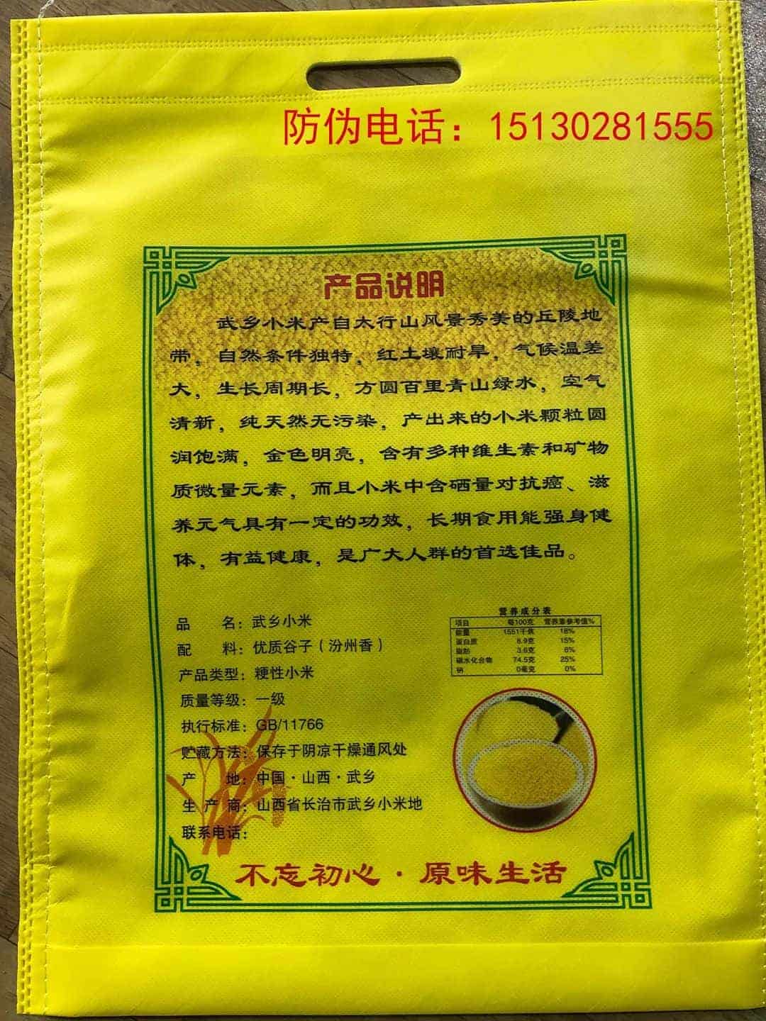 怡帆無紡布制品有限公司 定興怡帆包裝彩印廠已成立多年,廠家是以無紡布為原料的加工企業(yè),專業(yè)生產(chǎn)各類米面小包裝。產(chǎn)品有無紡布面粉袋,無紡布大米袋,無紡布小米袋,無紡布雜糧袋,無紡布手提袋,無紡布廣告袋,印刷工藝包括絲印,膠印,彩印,加工設(shè)備有彩印機,膠印機,絲印機,全自動無紡布制袋機,無紡布復合機等齊全。 廠貌展示 包裝展示 · 面粉袋展示 · 米袋展示 · 小米通用袋 聯(lián)系我們 聯(lián)系人:宋經(jīng)理
