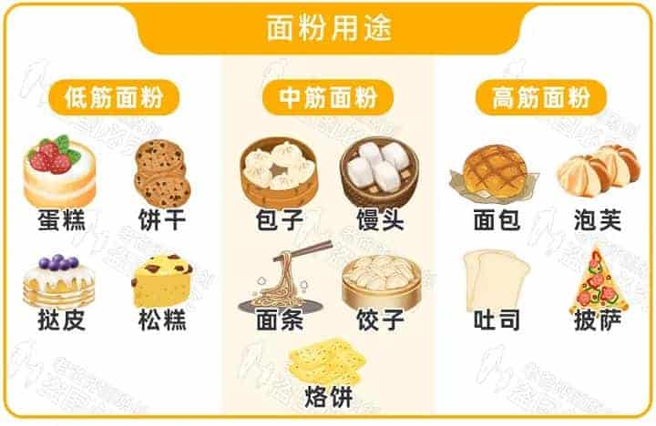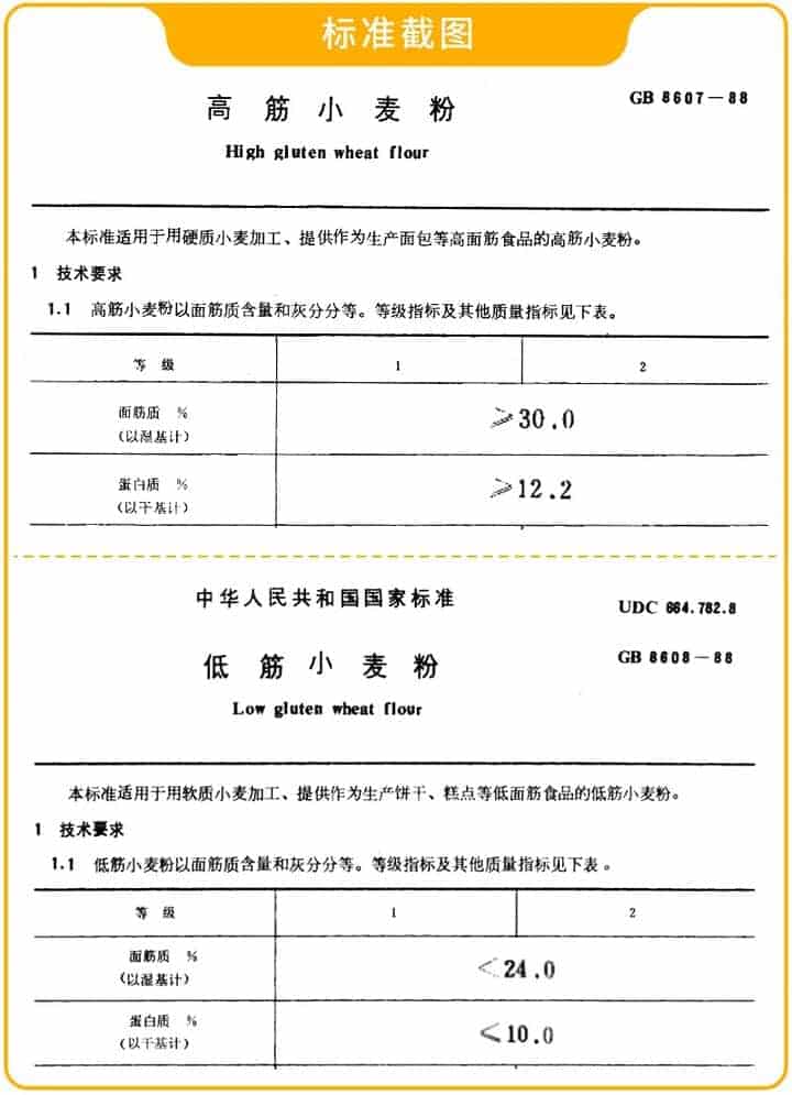 中筋面粉+適量谷脘粉≈高筋面粉;優劣辨別