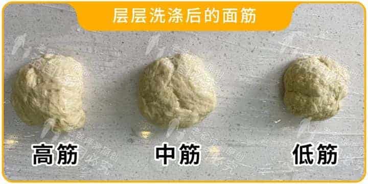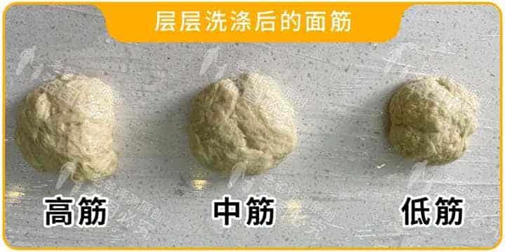 各稱取 150g 面粉加入 80g 水,揉成面團醒,發 20min,水洗到無淀粉析出。