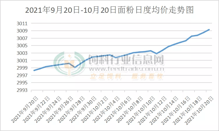 受小麥采購成本上漲影響,近期面粉加工企業相繼上調面粉出廠價格,但因下游經銷商接受度較低,面粉提價空間有限,面粉加工企業利潤空間較小甚至虧損,面粉市場需求不暢制約粉企開工率。與中小型面粉企業相比,大型面粉加工企業在采購成本控制、質量控制、品牌體系建設等方面體現出更為明顯的優勢。據市場監測,截至10月中旬,江蘇泰州泰興地區面粉企業前路粉出廠價3080元/噸;安徽淮南鳳臺地區面粉企業30粉出廠價2980元/噸;河南商丘永城地區面粉企業30粉出廠價3080元/噸;河北邢臺柏鄉地區面粉企業30粉出廠價3120元/噸;山東德州德城地區面粉企業30粉出廠價3120元/噸。