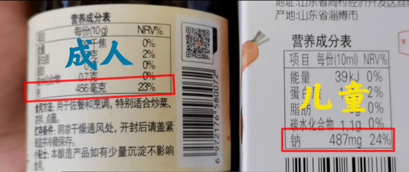 記者在商場的一款兒童醬油上看到,產(chǎn)品配料為水、大豆、小麥、食用鹽等,與普通醬油并無不同,甚至鈉含量比普通醬油還高,一瓶23.9元的價格,比普通醬油高出近5倍。